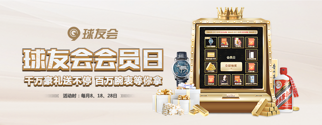 一、活动名称:球友会会员日 二、活动时间:2021年6月2日~2026年12月31日 三、活动内容: 所有会员在上一个会员日结束后至下一个会员日开始前(不含会员日当天)充值任意金额,即可在会员日当天免费获得一次抽奖机会;(例:在3月28日会员日当天享受免费抽奖时,只要在3月19日~3月27日内成功完成任意金额,以此类推); 所有会员在会员日当天累计存款达到1000元,可在会员日当天额外加赠一次抽奖机会,并且存款金额将持续累计,当达到20000元时将额外再加赠1次抽奖次数以此类推,如下表: 活动对象 所有会员 参与日期 29号-8号 9号-18号 19号-28号 会员日当天累计存款金额 ≥任意存款金额 免费抽奖1次 每个会员日加赠最高五次抽奖机会 ≥1000元 抽奖次数+1 ≥20000元 抽奖次数+1 ≥200000元 抽奖次数+1 ≥1000000元 抽奖次数+1 四、活动规则: 1. 活动时间:每月8日、18日、28日; 2. 当前会员日活动结束后,所有充值累计将被清零,并将在下个会员日开始重新累计; 3. 会员所获得的抽奖次数仅在会员日当天有效,当天结束后所有累计将被清零,并在下个会员日内重新获得新的抽奖次数; 4. 抽到红包奖励的会员,彩金将以红包优惠的形式派发,领取方法:移动端进入【优惠】 → 【我的优惠券】;电脑端进入【账户中心】 → 【全民自助】 → 【优惠券专区】 即可自行领取;红包有效期7天,6倍流水即可提款; 5. 抽到实物奖励的会员,请会员主动联系在线客服登记信息提交收货地址。提交成功后,工作人员会在3~5个工作日内安排邮寄,成功邮寄后会有电话告知,请会员申请后,保持电话畅通。实物有效期为抽中的30天内均可登记领取,逾期视为自动放弃,实物奖励不支持现金兑换; 6. 若抽奖次数未及时更新,可能存在数据上传延迟的情况  请稍作等待; 7. 参与本次活动的所有会员须同一手机号码、同一电子邮箱、同一IP地址、同一通信地址、同一台设备且账号只能由同一位会员使用,根据公平有序原则,若发现套利,对赌和不诚实不正当进行游戏的会员,QY球友会将有权扣除对应的本金和红利的权利; 8. 为避免文字争议,此活动将遵循QY球友会的一般活动规则和条款,QY球友会对本次活动拥有最终解释权; 五、了解更多活动详情,请点击【立即参与】。