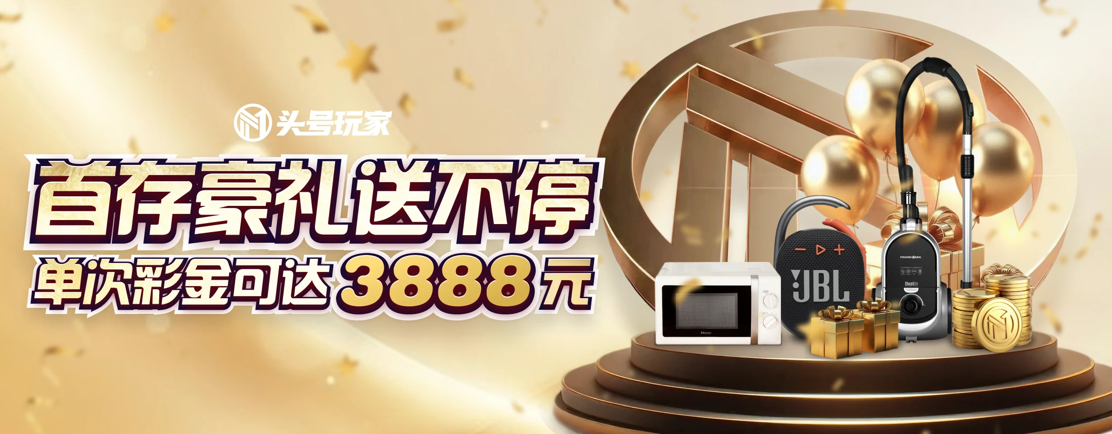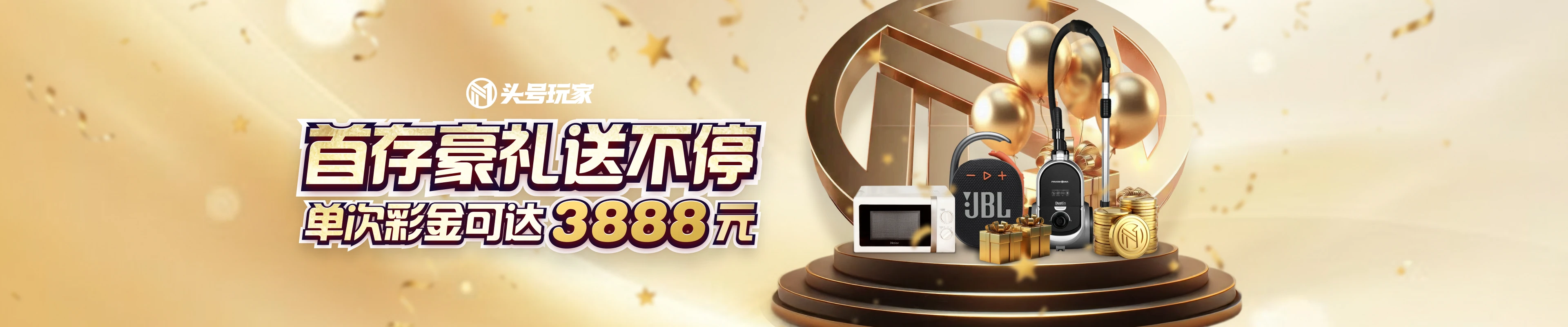一、活动名称:首存豪礼,彩金礼品通通送 二、活动时间:2022年04月11日~2026年12月31日 三、活动对象:头号玩家全体会员 四、活动内容: 自2022年4月11日起注册玩家,均可参与此活动,存款成功后,进入此页面申请首存优惠,存多送多最高送3888 首次存款 存送30% 二次存款 存送40% 三次存款 存送50% 三次存款累积满18888元,可赠送价值588的精美礼品 美的C7吸尘器 海尔复古机械微波炉 JBL无线音响 五、活动规则: 1. 首存金额是指第一笔转入游戏平台前的单笔存款金额,存款后直接至该页面申请首存优惠。 2. 存款完成后,请先在此页面领取对应红利,若先行转入游戏平台将默认不参与存送活动。 3. 首存、二存、三存每种存送只能申请一次,达到三次后请参考官网次存及限时活动。 4. 精美礼品需同时满足达到充值金额以及参与三次存送之后,才可领取。 5. 此优惠完成(本金+优惠)的20倍流水,即可提款。 6. 此优惠不与线下优惠共享;捕鱼和彩票不参与此优惠,请参考其他优惠活动。 7. 此次优惠同位玩家﹑同户﹑同一住址 、同一电子邮箱地址﹑同一电话号码﹑相同支付方式(相同借记卡/信用卡/银行帐户姓名及号码) 及IP地址只能享有一次优惠,一旦确认为套利玩家,我平台将有权扣除。 8. 该活动玩家可以在任意游戏平台进行投注,多旋转老虎机和老虎机奖金翻倍投注、体育快速结算赛事以及虚拟赛事将不计算在内,且任意投注不能出现对赌的情况,如投注时出现上述情况将取消申领资格,扣除所有红利以及盈利。 9. 头号玩家对本次活动拥有最终解释权。 六、了解更多活动详情,请点击【立即参与】。