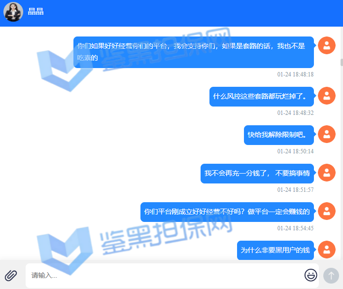 4.用户提交维权需为本人提交,若代替让人发布维权鉴黑担保网将拒绝受理;